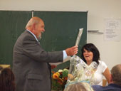 Für die Leiterin Blumen und den goldenen Kochlöffel