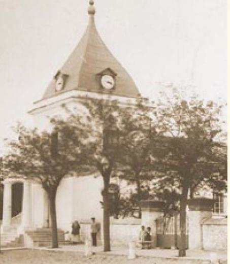 Bild 2: Kirchturm der ref. Kirche in Schabo