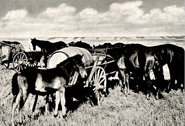 Pferde füttern auf der freien Steppe