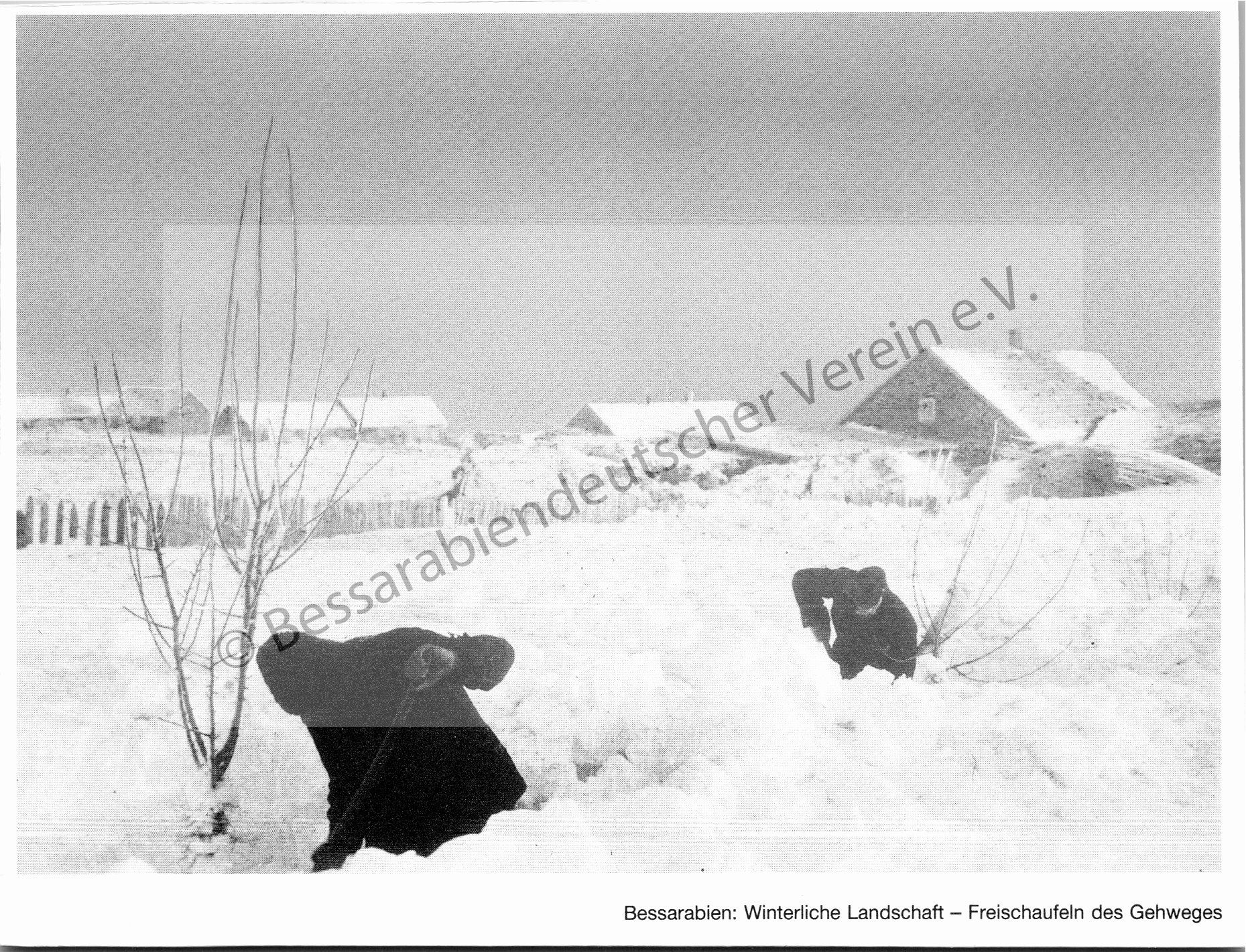 Postkarte - Winterliche Landschaft, freischaufeln des Gehweges