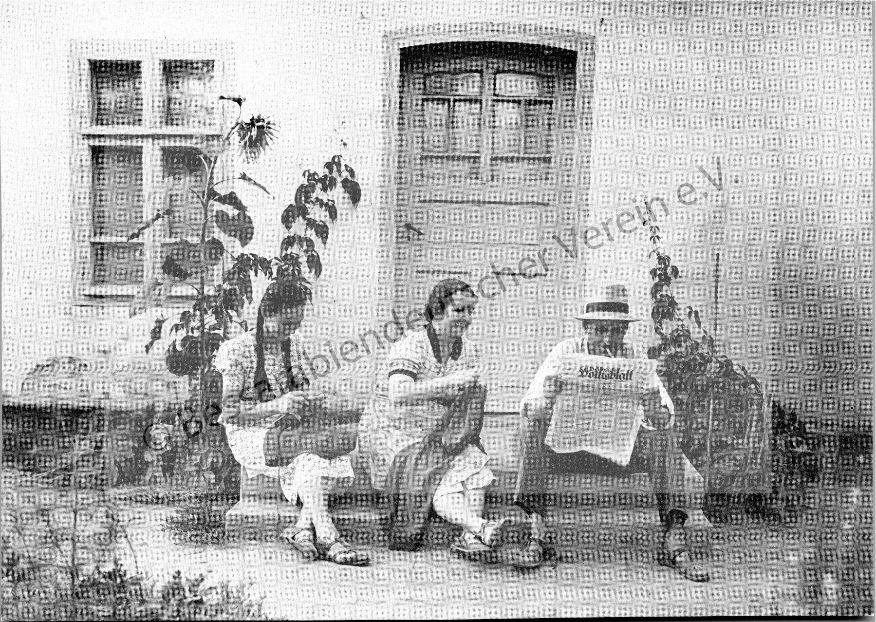 Postkarte - Gnadenfeld, Zeitunglesen nach getaner Arbeit