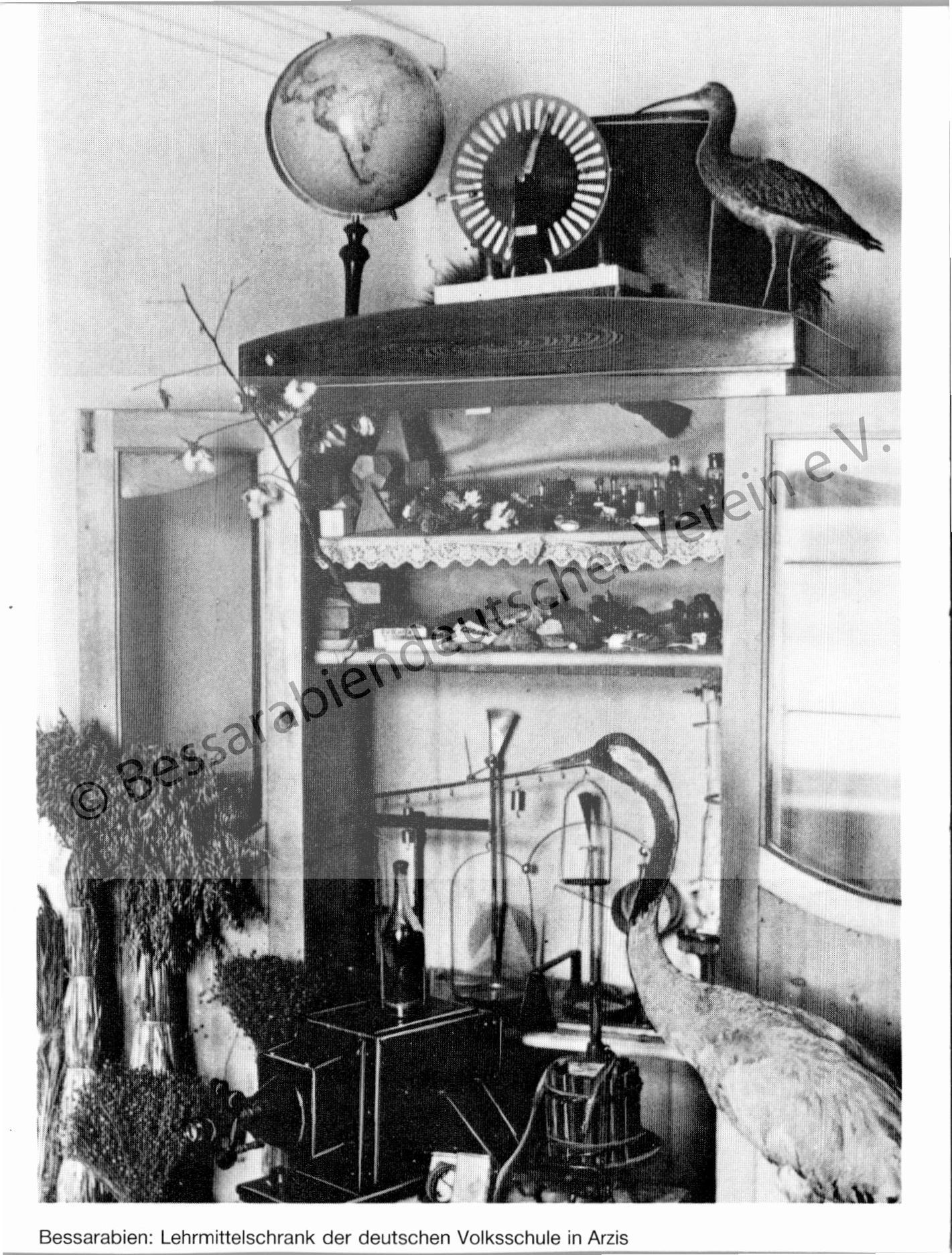 Postkarte - Lehrmittelschrank der deutschen Volksschule in Arzis