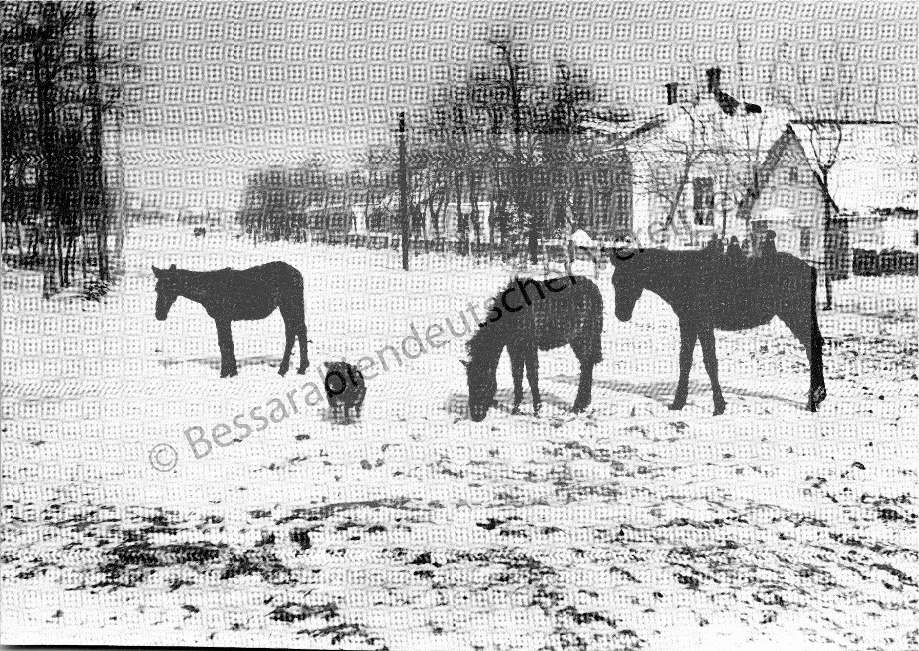 Postkarte - Tarutino, Fohlen auf der Straße ca. 1936