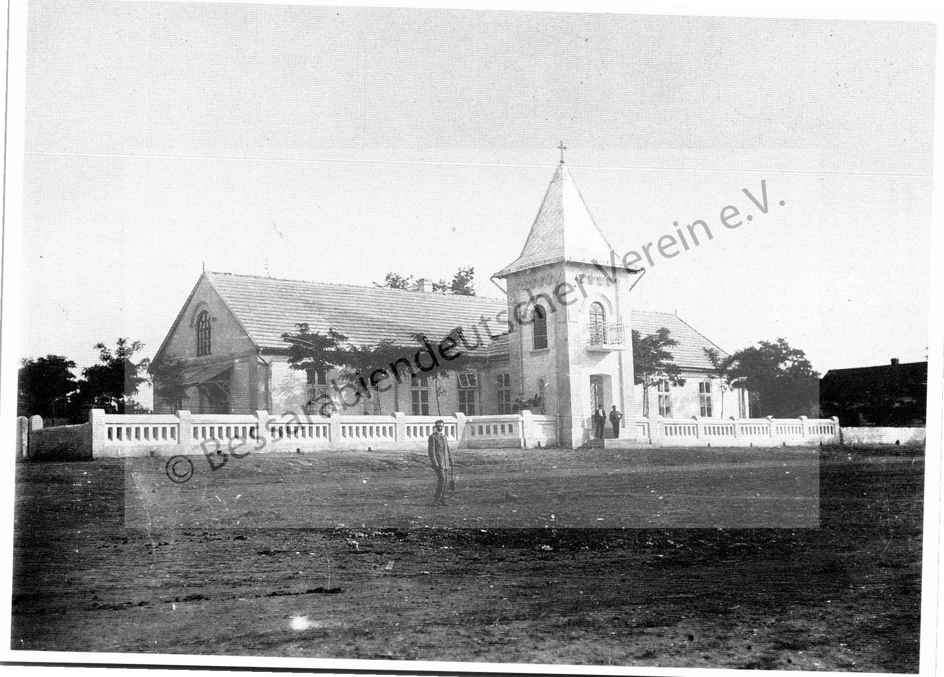 Postkarte - Neu-Sarata, Bethaus mit Glockenstuhl, erbaut 1892
