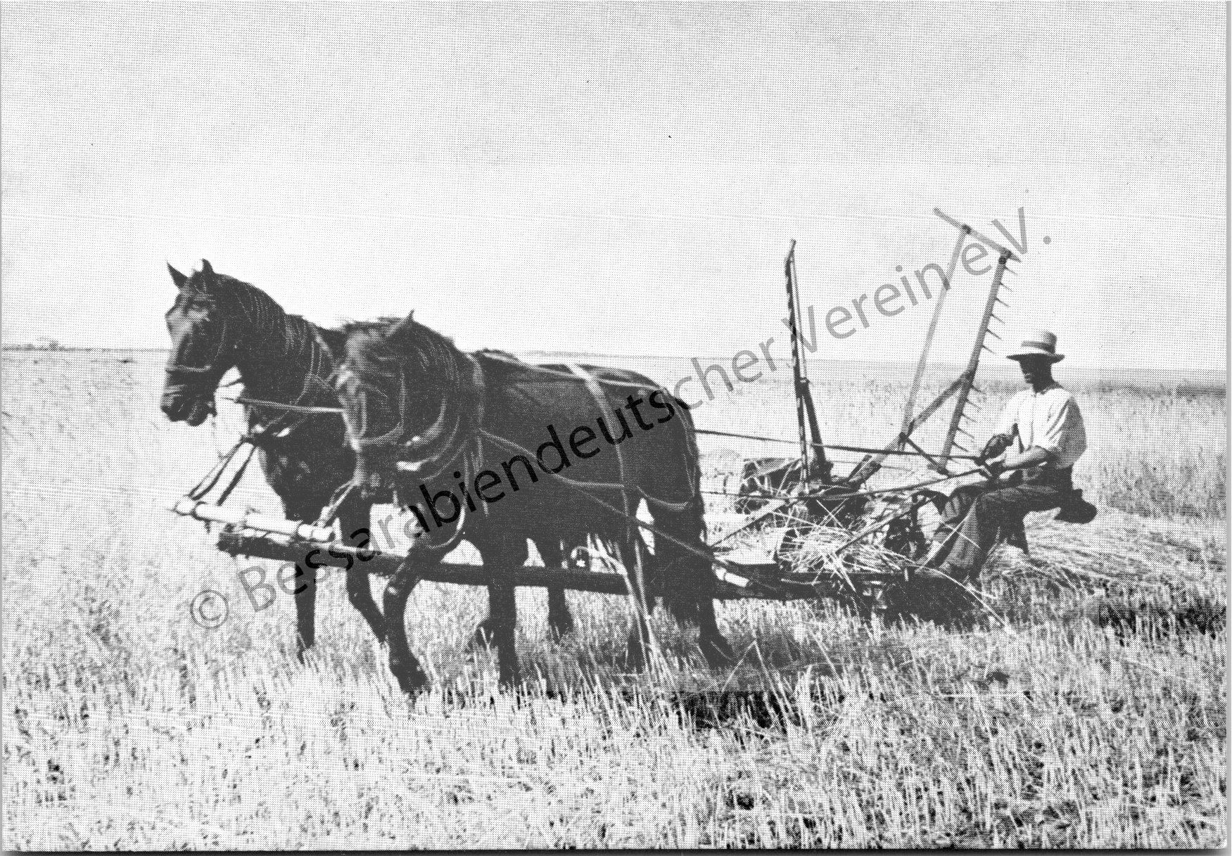 Postkarte - Mähen mit der Getreidemaschine
