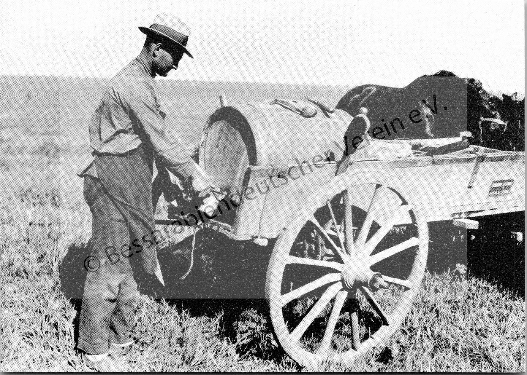 Postkarte - Auf der Steppe, Trogwagen mit dem Wasserfass