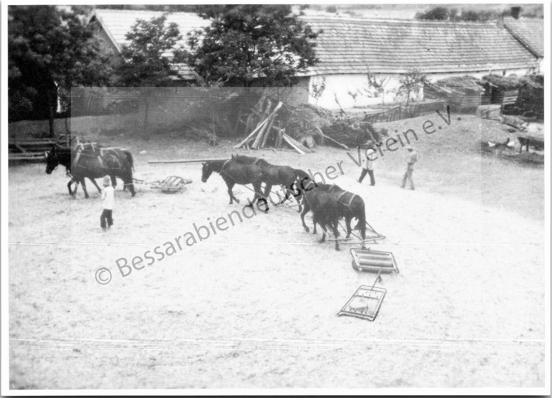Postkarte - Dreschen mit Dreschsteinen