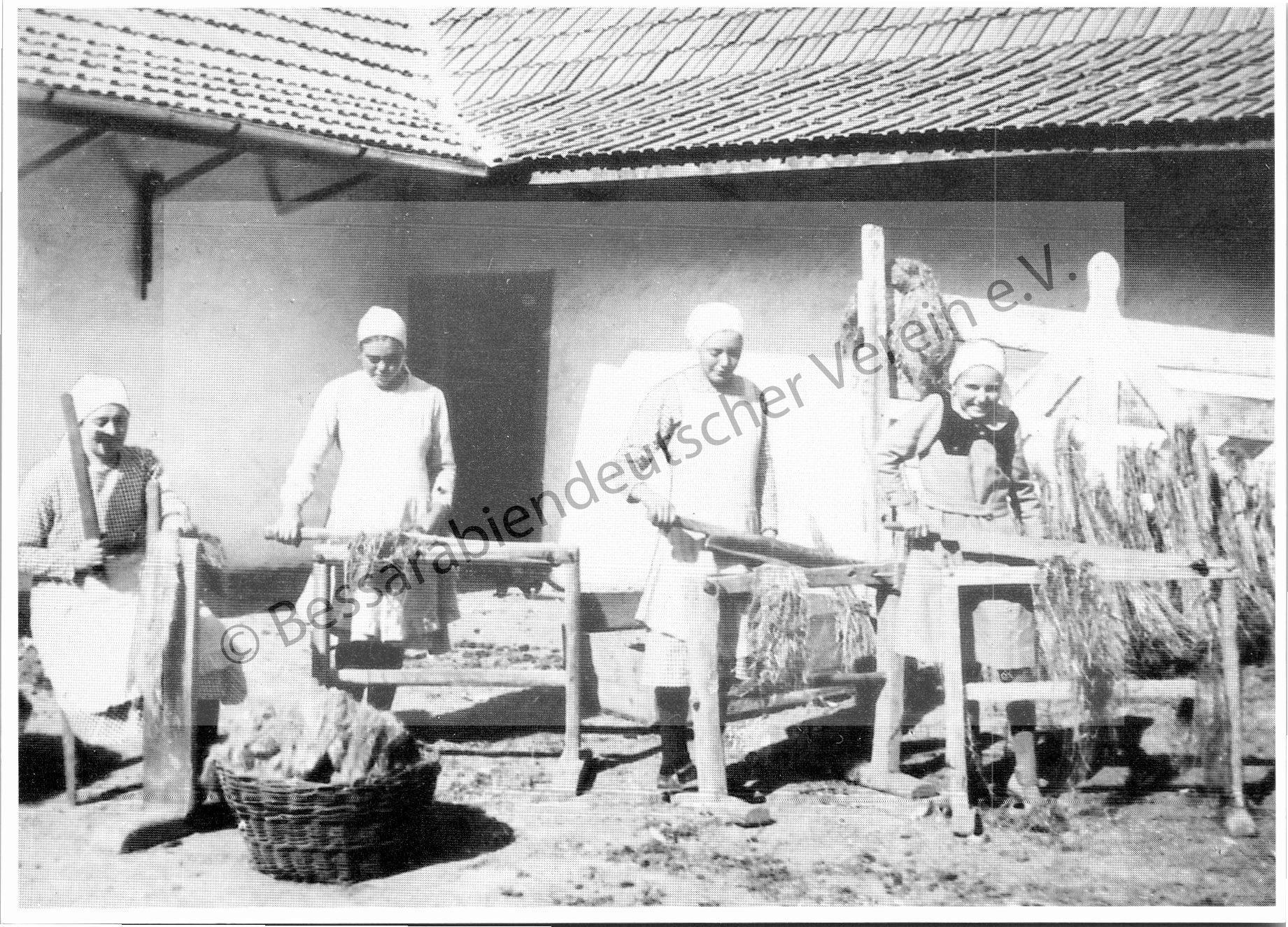 Postkarte - Borodino, Frauen beim Flachsbrechen