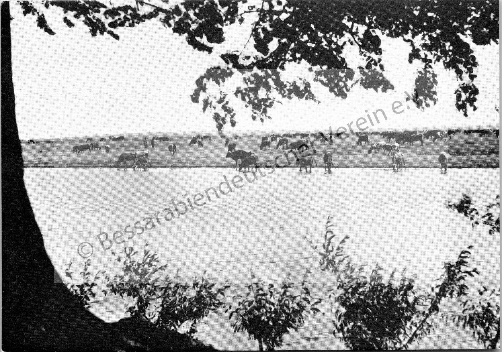 Postkarte - Weidende Viehherde am Steppenflüßchen Sarata