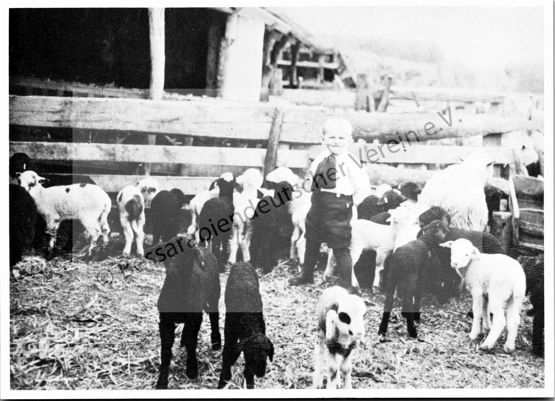 Postkarte - Schafstall, Auslauf für die jungen Lämmer