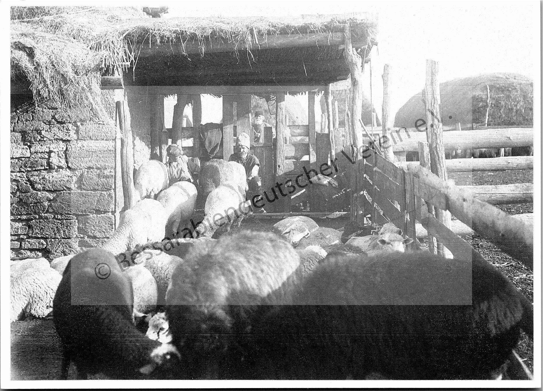 Postkarte - Der "Melkschäfer" beim Melken der Schafe