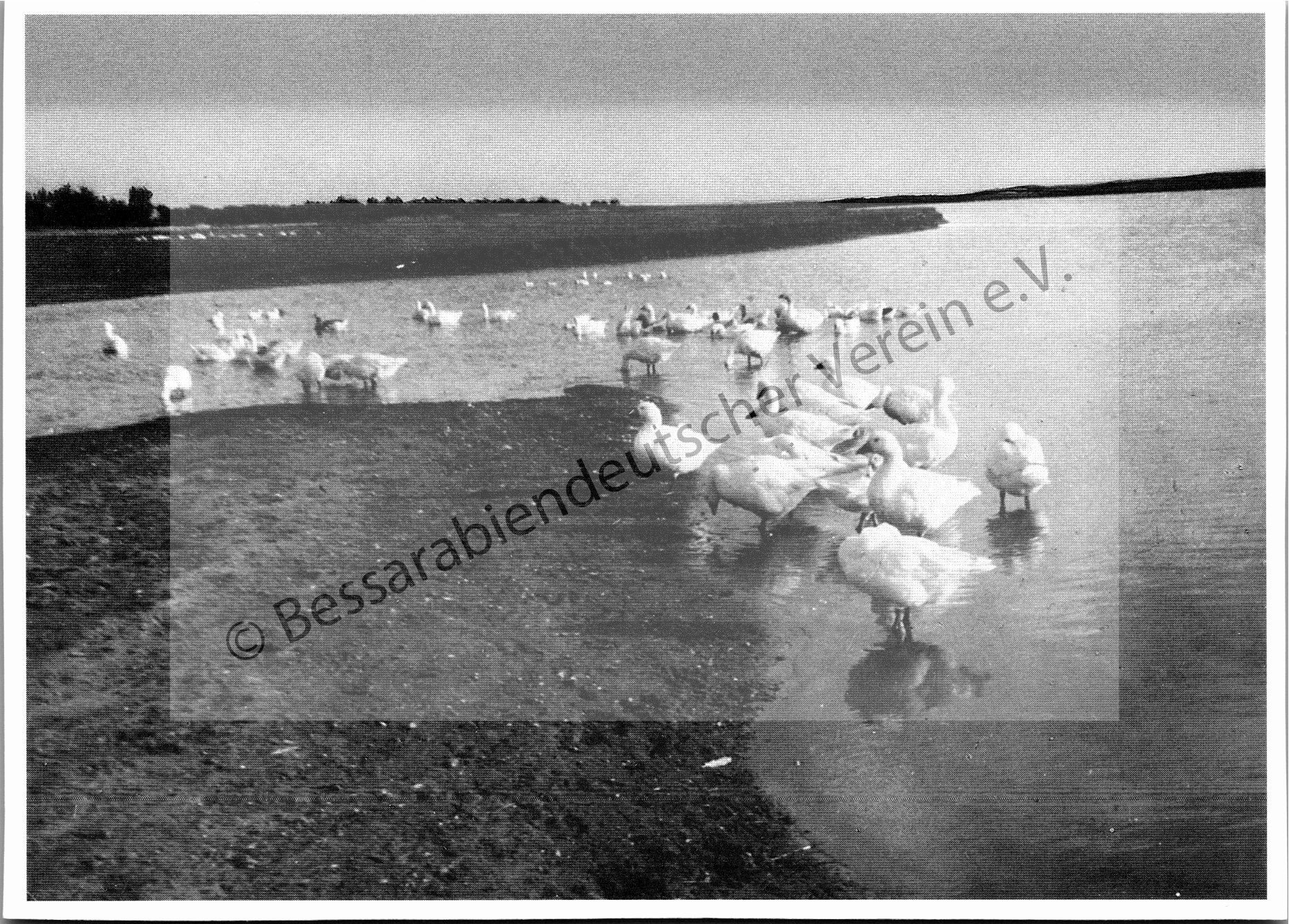 Postkarte - Gänse am Fluß Sarata in Eigenfeld