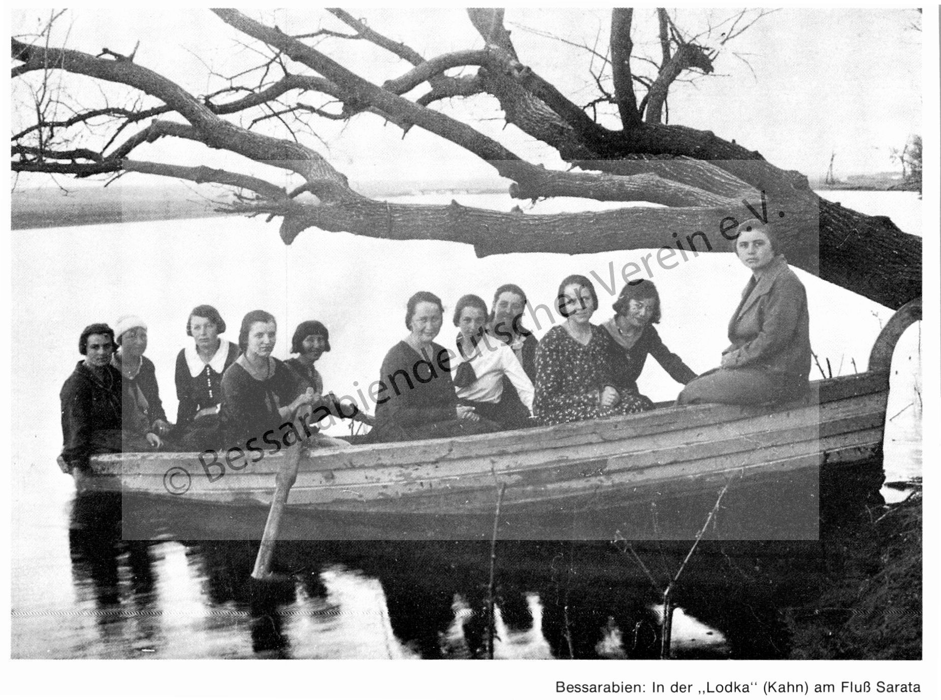Postkarte - In der "Lodka" (Kahn) am Fluß Sarata
